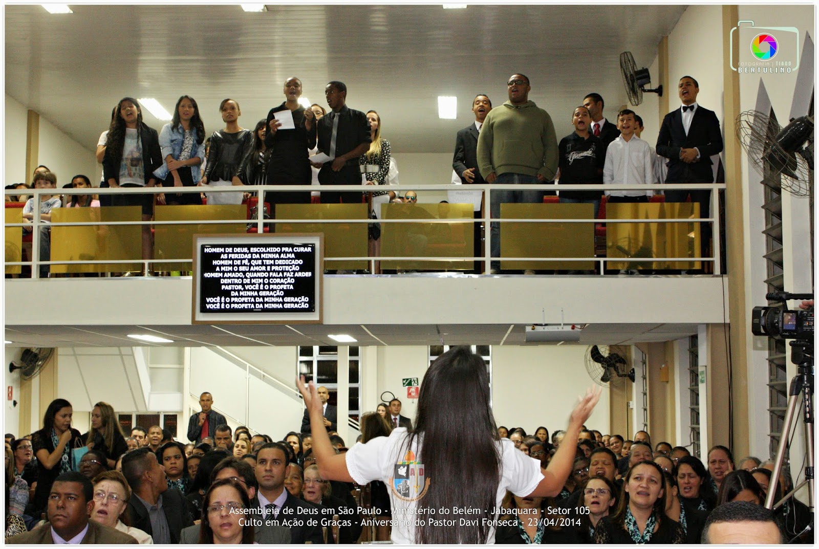 No dia 23 de abril, a Assembleia de Deus, Ministério do Belém no Jabaquara (SP), Setor 105, comemorou com culto de gratidão mais um ano de vida de seu pastor setorial, Davi Fonseca. O culto foi dirigido pelo pastor do Setor 45 - Taboão da Serra (SP), Edson José dos Santos, que representou o pastor presidente, José Wellington Bezerra da Costa e toda diretoria da Igreja.